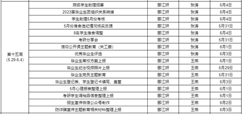 理学院学工2022/2023学年第二学期第15周工作安排
