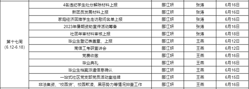 理学院学工2022/2023学年第二学期第17周工作安排