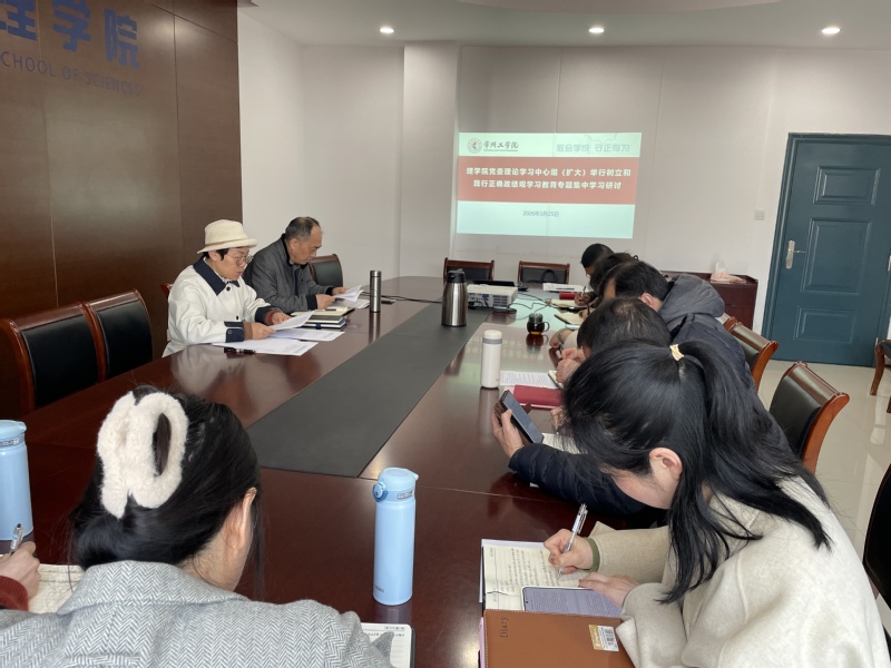 2026年3月25日下午,理学院党委理论学习中心组在玉衡楼B508举行树立和践行正确政绩观学习教育专题集中学习研讨。学院党委书记李晓芳主持会议,党委理论学习中心组成员、党支部书记、科级干部、专职组织员参加学习。